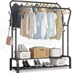 Double clothes rack with bottom shelves